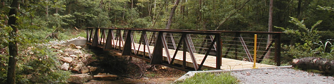 Bernheim Arboretum and Research Forest is a 16,140-acre privately operated arboretum, forest and natural preserve. Located 25 mi south of Louisville, KY, this natural area is visited by more than 500,000 visitors annually. As part of the Bernheim Forest bike/hike trail development initiative, our team provided bridge design, specifications, and fabrication and construction oversight at two locations.