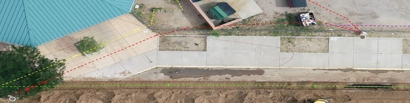 Through our district-wide on-call, our team continues to serve the project in response to NM811 Standard Locate Requests. Line-spotting was provided prior to and during portable and utility removals, demolition, site work and construction of utilities that would service the new facility. We are using a combination of UAV/utility designation/surveying technologies to document utility improvements associated this project. In this case, utility information is collected as it is installed in the trench to precisely map the horizontal location and elevation. Other characteristics of the utility are documented and include: utility diameter, material and installation date. These additional services will ensure utility information will be reliable and readily available for future design and construction phases. Updated maps are provided to APS FD&C and the construction team weekly or when new information is collected.