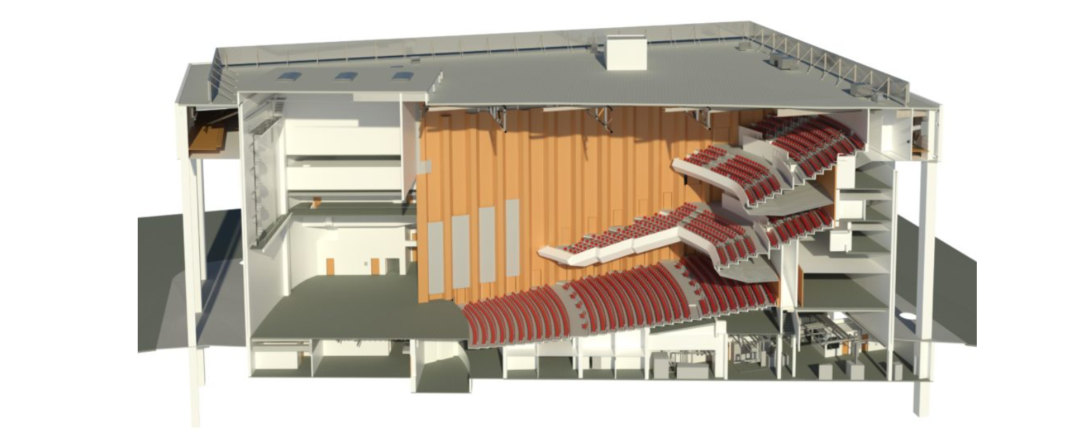 Our team conducted a comprehensive 3D laser scan of the entire building, from the center stage to the marble-clad exterior. Despite the building’s size, many areas were tight or hard to access, with some scan locations requiring harnesses due to their treacherous nature. In the mechanical room, our technicians meticulously scanned from every angle, ensuring complete coverage of all necessary surfaces. Close coordination with the architect was essential, and we issued multiple progress models to keep expectations aligned.