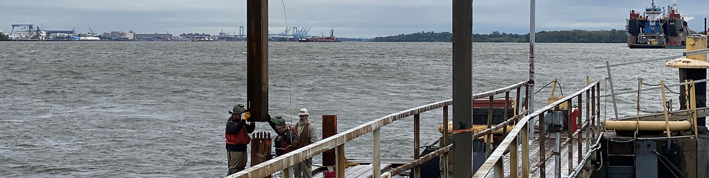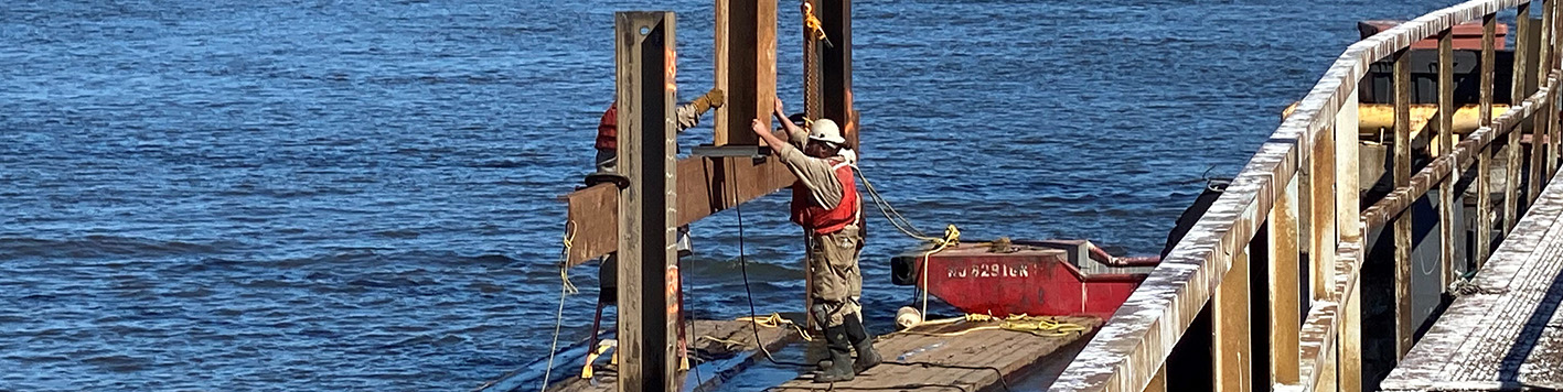 Provided full-time construction inspection for a project recently designed for an energy client in New Jersey. The project involved the construction of two mooring dolphins to tie up ships up to 750 FT long (LOA) and other associated construction work. Such construction work starts with the installation of falsework (temporary steel framing) to be able to install production piles at accurate locations and angles in the waterway.