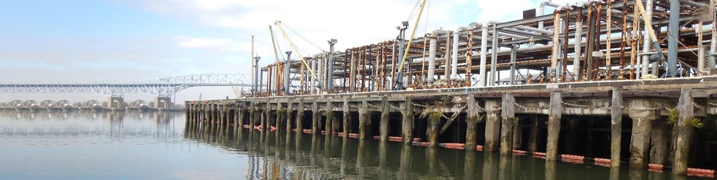 Conducted a routine inspection for 3.5 miles of Refinery waterfront along the Schuylkill River in Philadelphia, PA. The waterfront consisted of nine wharves, 22 steel sheet pile bulkhead sections (approximately 8,000 LF of bulkhead) and six categories of miscellaneous structures. Our team completed the underwater routine inspection in accordance with ASCE Manual in 17 days. Surface supplied air equipment and watercraft were used for inspections. Remaining steel thickness of steel members were measured. Deterioration of timber elements was evaluated and deterioration/damage to concrete piles was recorded.