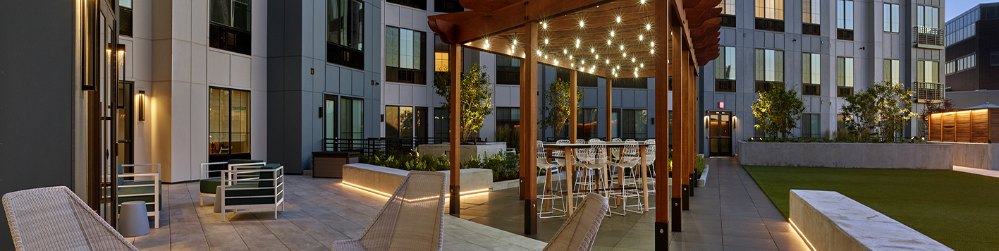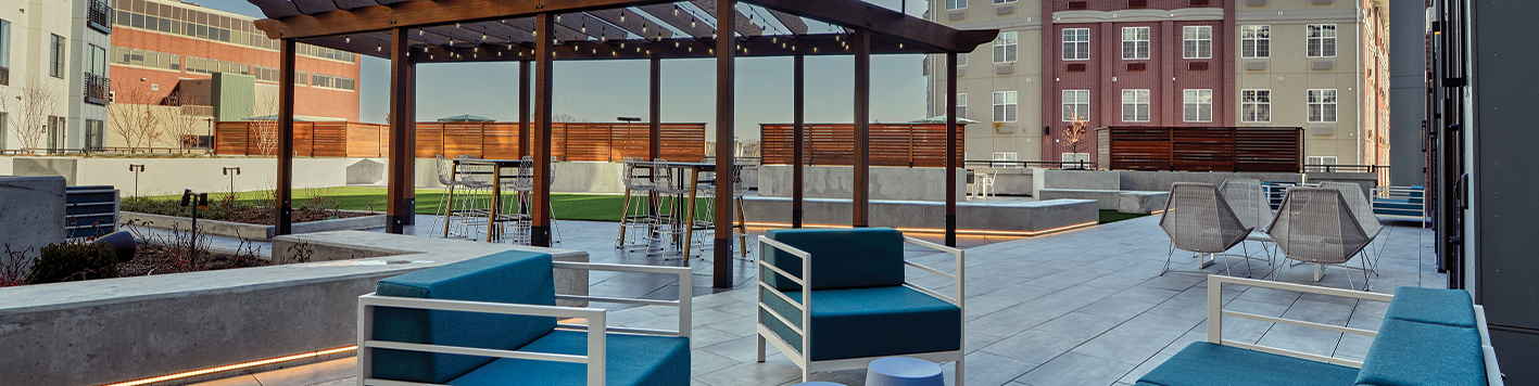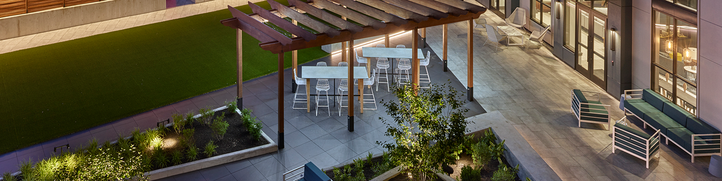 Bowman became involved during the conceptual phase, and during the entire site plan approval process which included site plan approval drawings and planning board testimony. The team also provided construction documents and performed construction administration services. Site improvements included site layout, stormwater and utility improvements, planting and site lighting. Bowman’s landscape architecture team worked closely with the development team and the interior designer to provide the material selection as well as the preparation of specific construction details for all improvements in the exterior amenity spaces. The team also provided full landscape and hardscape construction for the exterior amenity spaces.