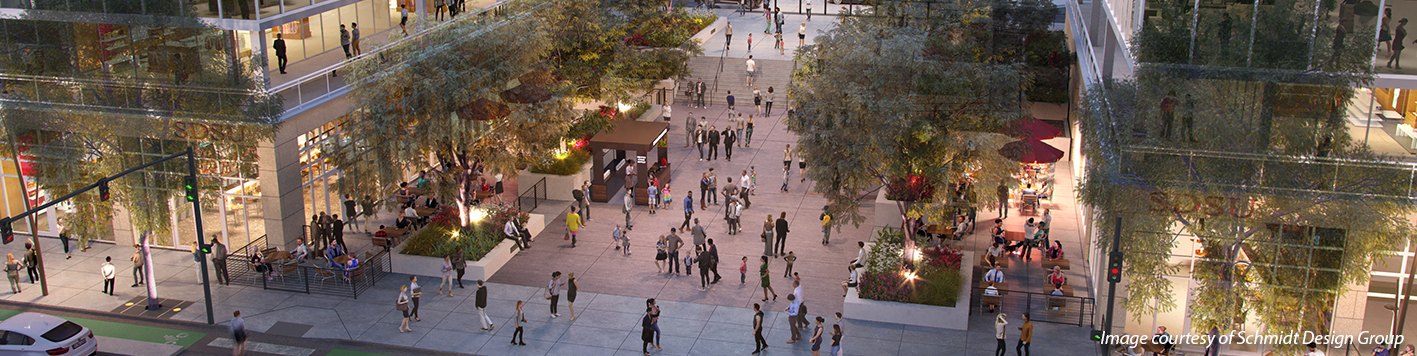 Our team was selected to lead the design team for San Diego State University (SDSU) in building a world-class university campus, research center and multi-use stadium in Mission Valley. The project will serve higher education, the public good and the community’s goals and aspirations. SDSU envisions a vibrant, mixed-use, medium-density development that is transit-oriented, and expands the university’s educational, research, entrepreneurial and technology transfer programs. SDSU Mission Valley will include a 35,000-seat stadium, 1.6M sq. ft. Research and Innovation District, a transit station, 95,000 sq. ft. retail, 4,600 housing units, and the development of more than 80 acres of community parks and open space, including the 34-acre River Park.