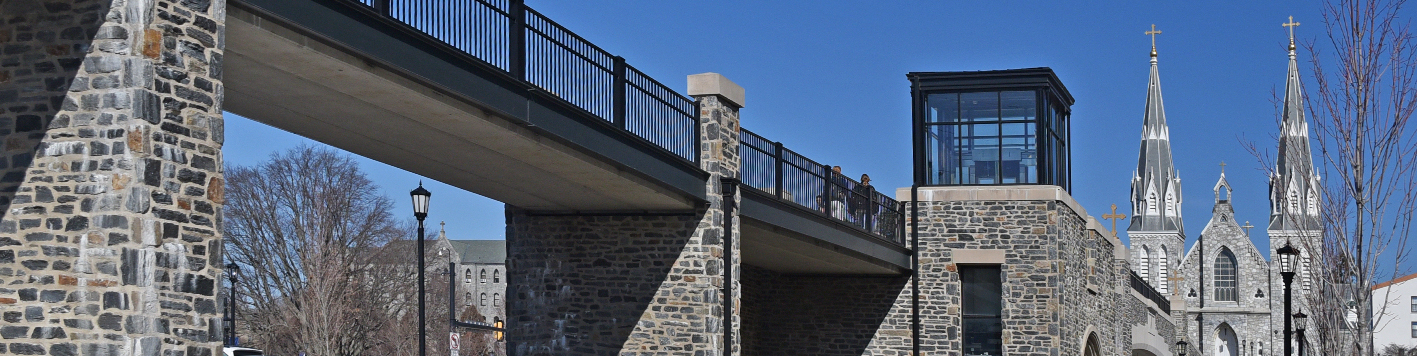 The team was engaged by Voith & Mactavish Architects, LLP (VMA) to complete the engineering and design of a pedestrian bridge and associated roadway improvements. Villanova’s ultimate vision was to transform an existing paved surface parking lot between Lancaster Avenue and the SEPTA Norristown HighSpeed Rail Line into an attractive living and learning environment. This included Collegiate Gothic-style student housing, student-centric retail, a performing arts center and a parking garage. Working closely with VMA and the project team, our team completed the structural design as an integral part of this campus transformation.