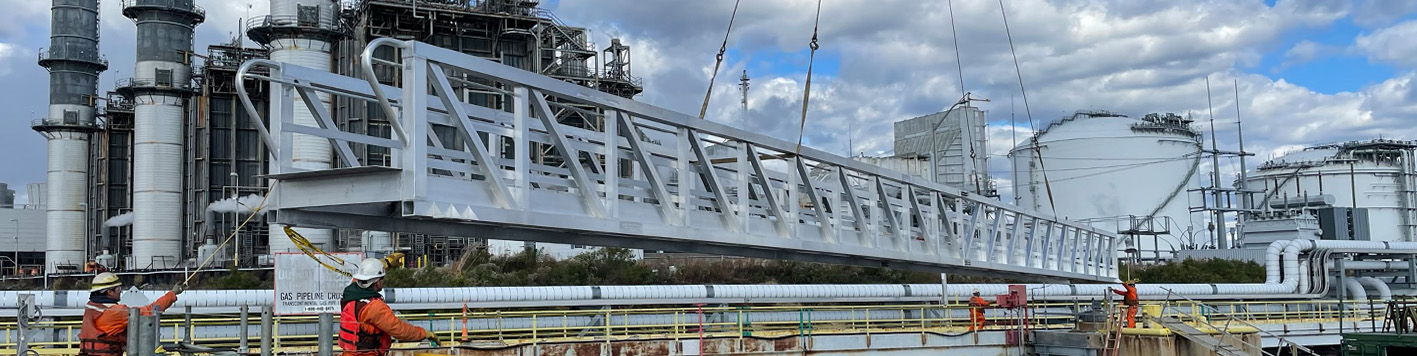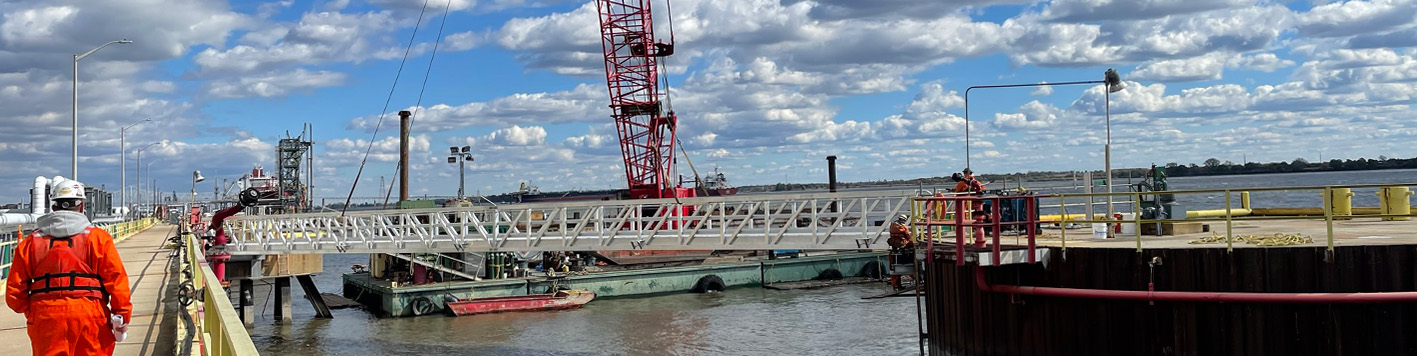 Bowman provided damage investigation, claim support, design, permitting, material procurement, and engineering support services during the construction of a approximately 104 FT span walking bridge to replace a pile bent supported walkway that was damaged by an aberrant barge at this petroleum facility.
