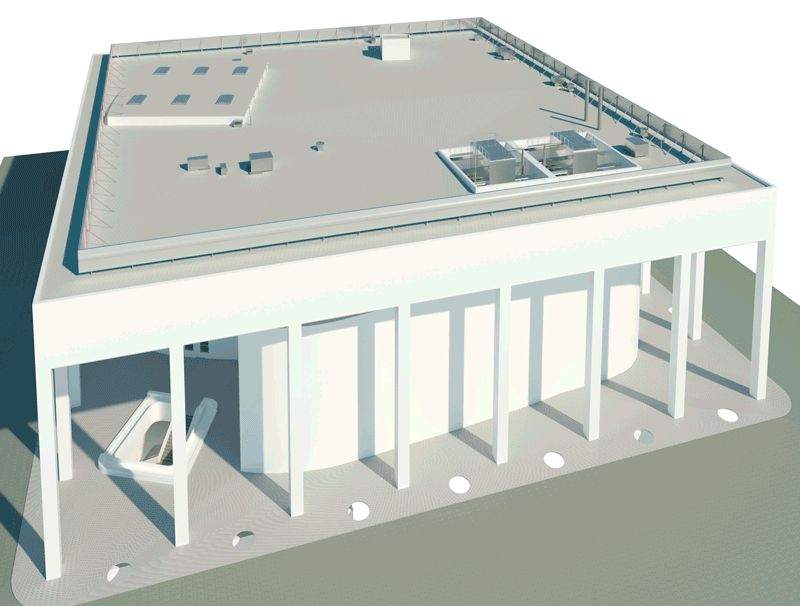 Our team conducted a comprehensive 3D laser scan of the entire building, from the center stage to the marble-clad exterior. Despite the building’s size, many areas were tight or hard to access, with some scan locations requiring harnesses due to their treacherous nature. In the mechanical room, our technicians meticulously scanned from every angle, ensuring complete coverage of all necessary surfaces. Close coordination with the architect was essential, and we issued multiple progress models to keep expectations aligned.